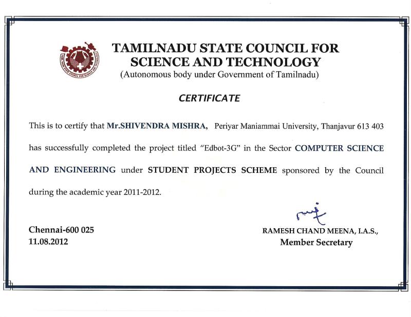 Issued by Tamil Nadu State Council for Science and Technology, Govt. of Tamil Nadu(India) · Aug 2012